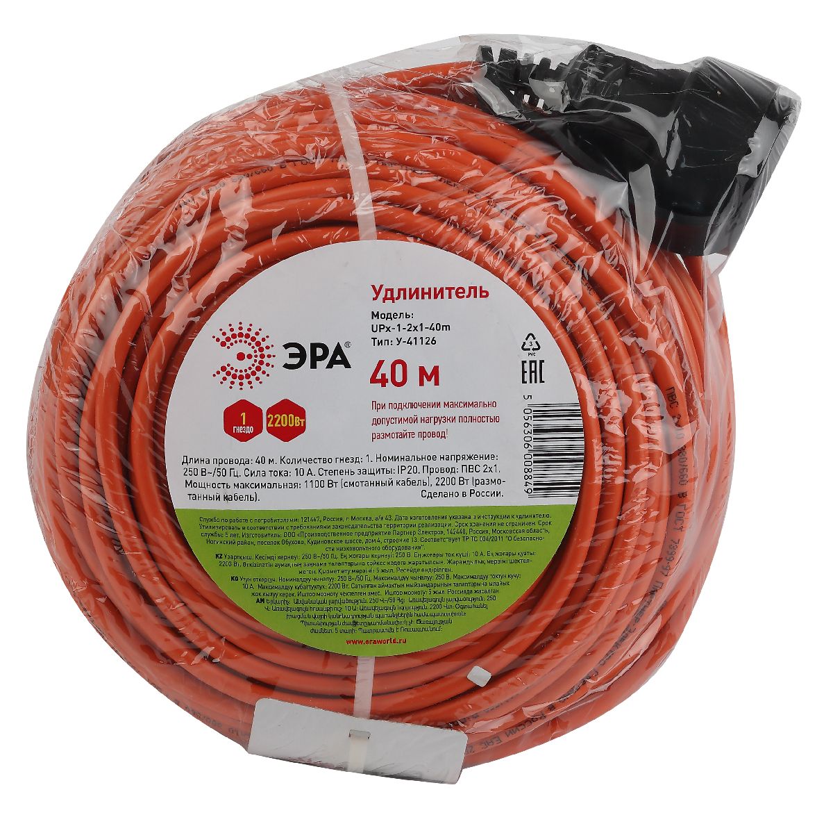 Удлинитель силовой Эра UPx-1-2x1-40m Б0046808Характеристики