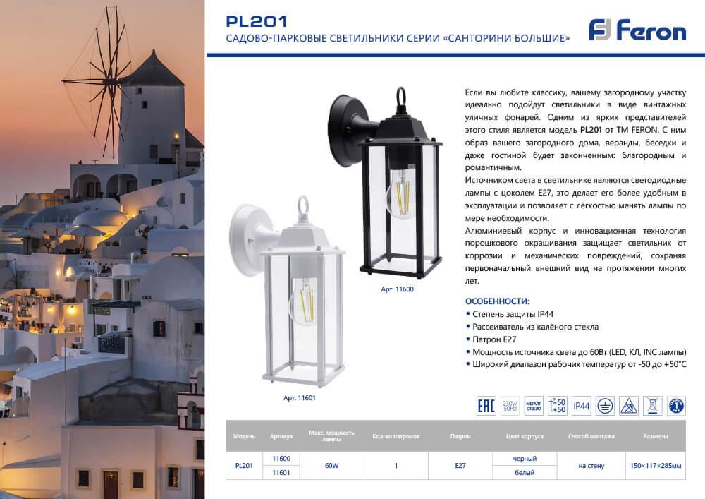 Уличный настенный светильник Feron Санторини PL201 11600Характеристики