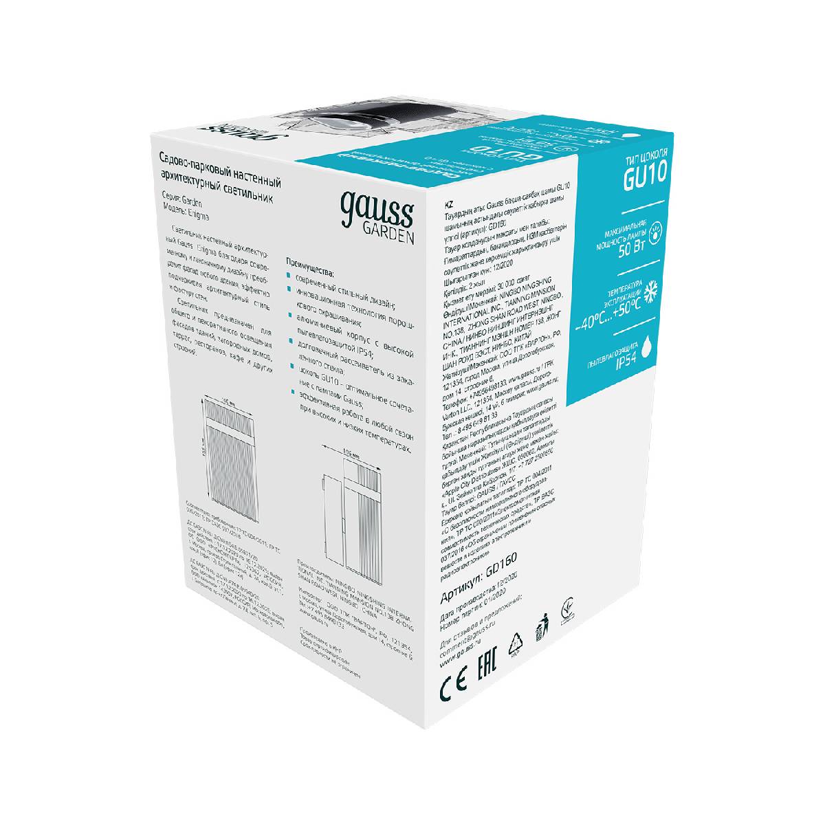 Уличный настенный светильник Gauss Electra GD160Характеристики
