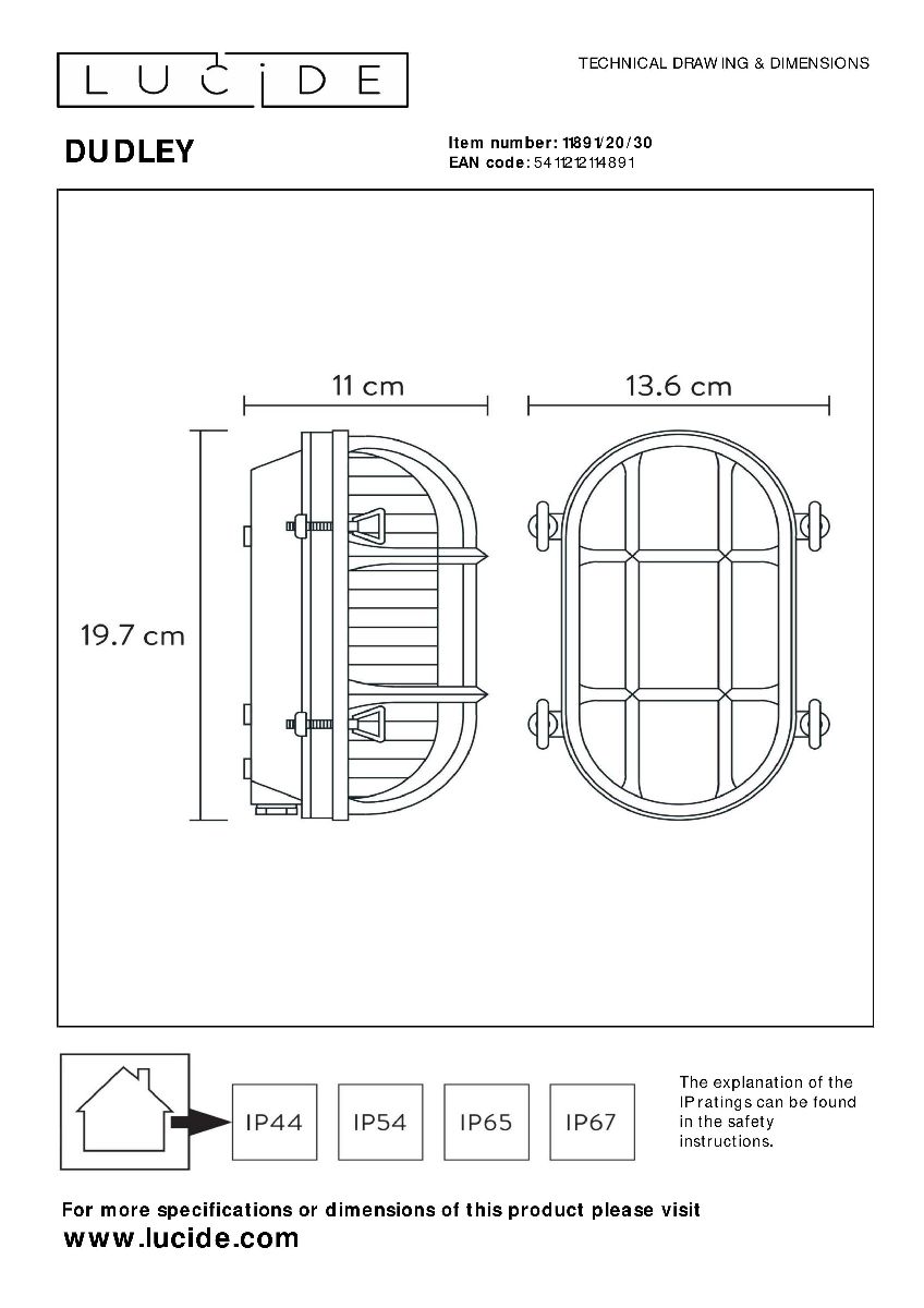 Уличный настенный светильник Lucide Dudley 11891/20/30Характеристики
