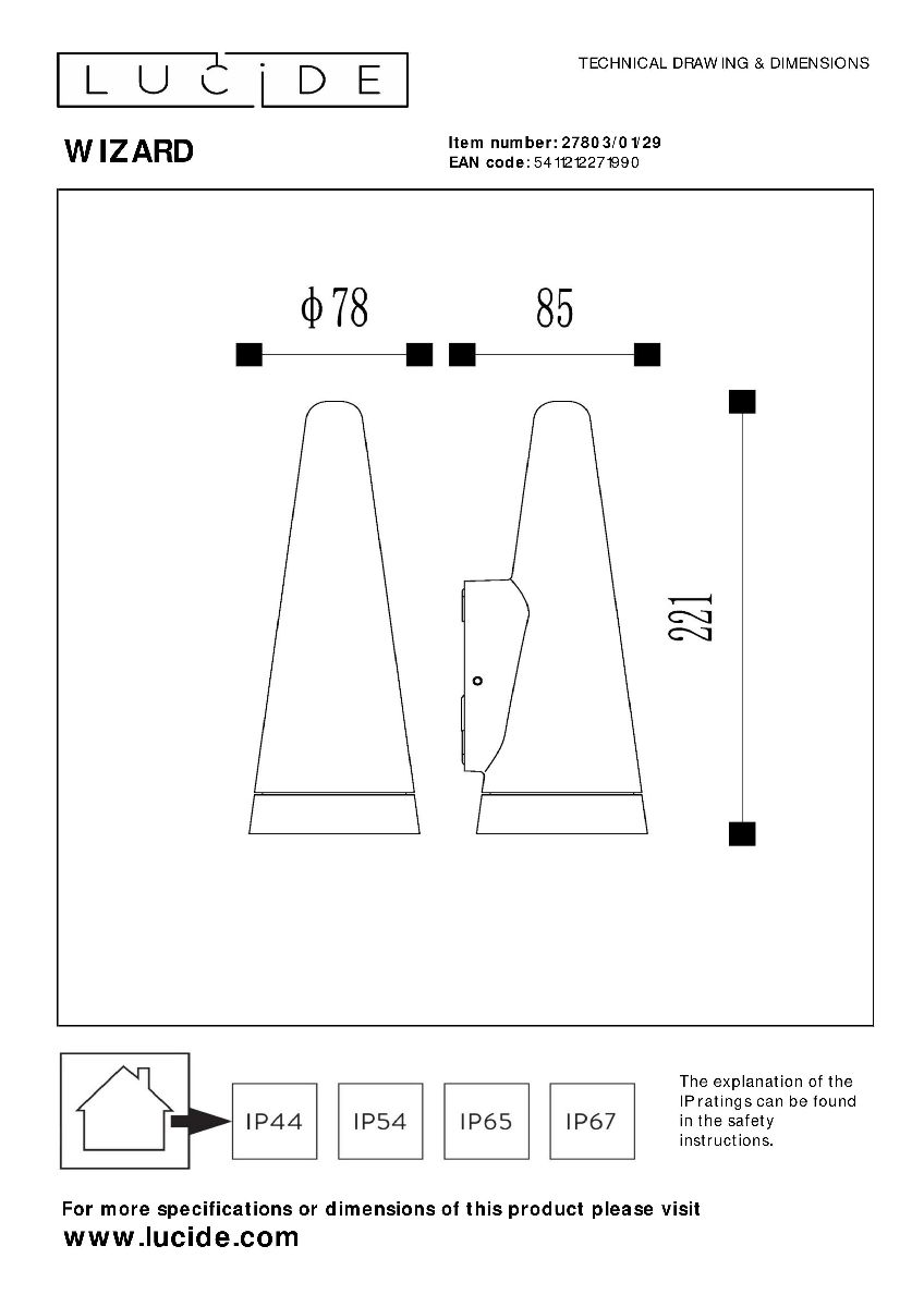 Уличный настенный светильник Lucide Wizard 27803/01/29Характеристики