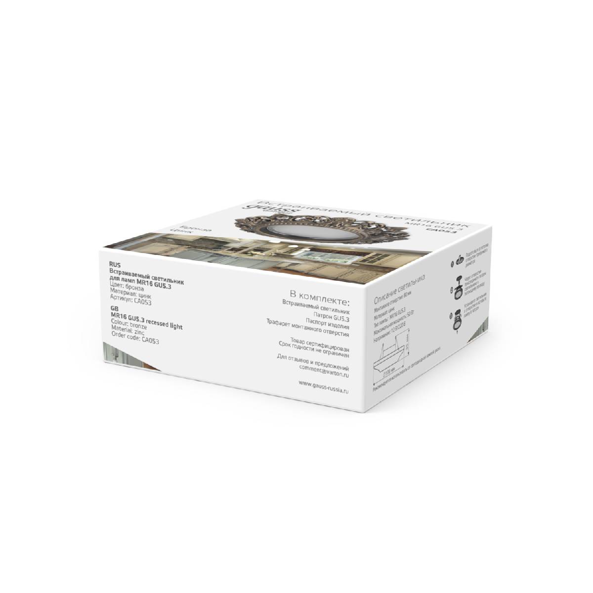 Встраиваемый светильник Gauss Antique CA053Характеристики