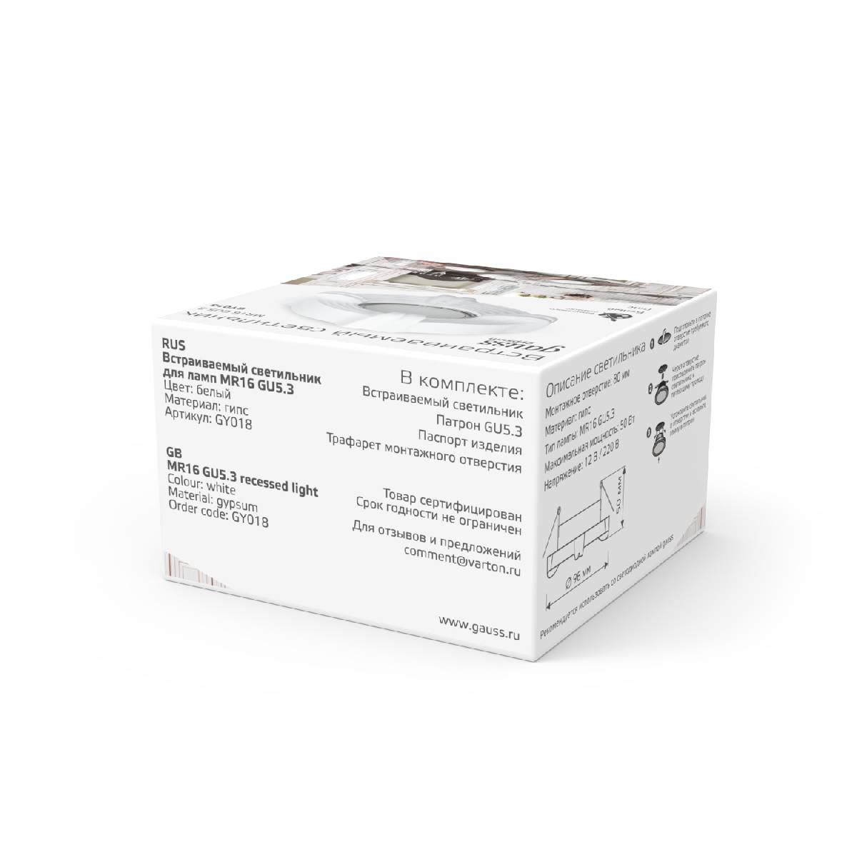 Встраиваемый светильник Gauss Gypsum GY018Характеристики