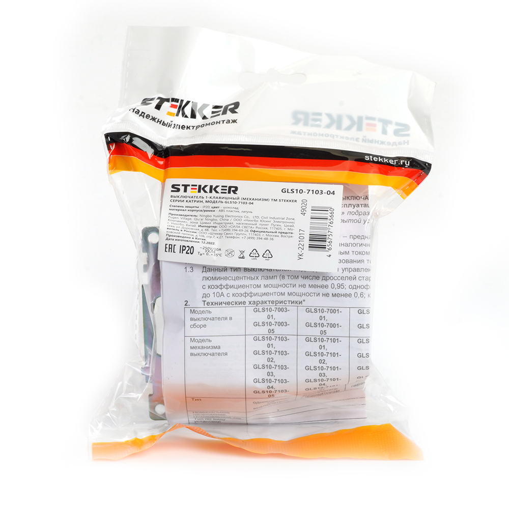Выключатель 1-клавишный Stekker Катрин GLS10-7103-04 49020Характеристики