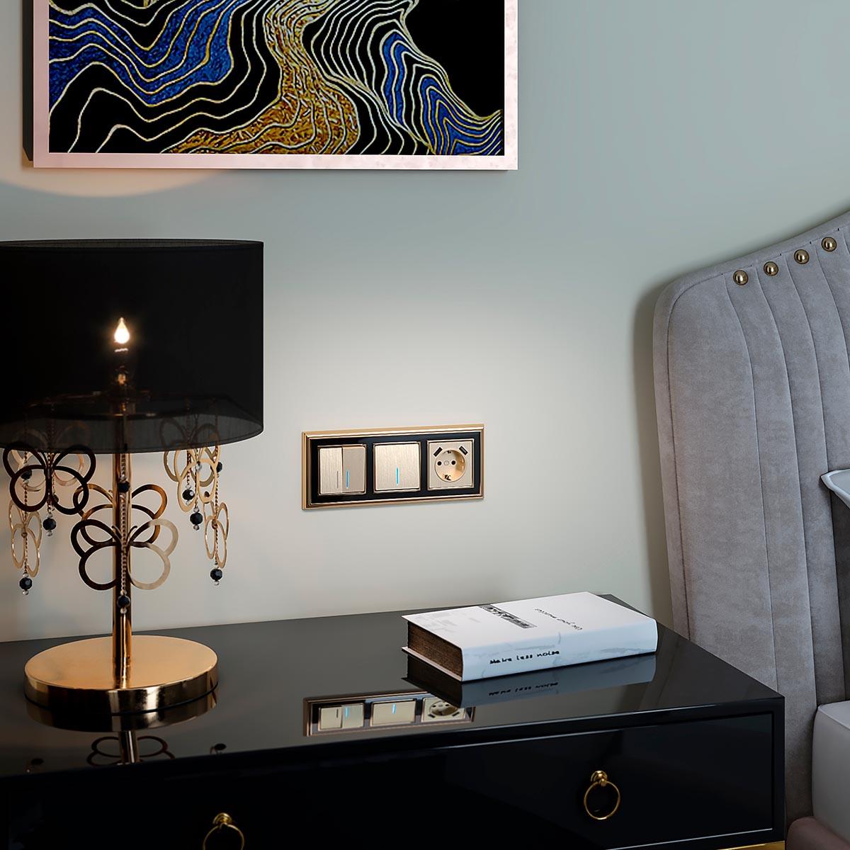 Выключатель Werkel двухклавишный проходной с подсветкой шампань рифленый W1122110 4690389160257Характеристики