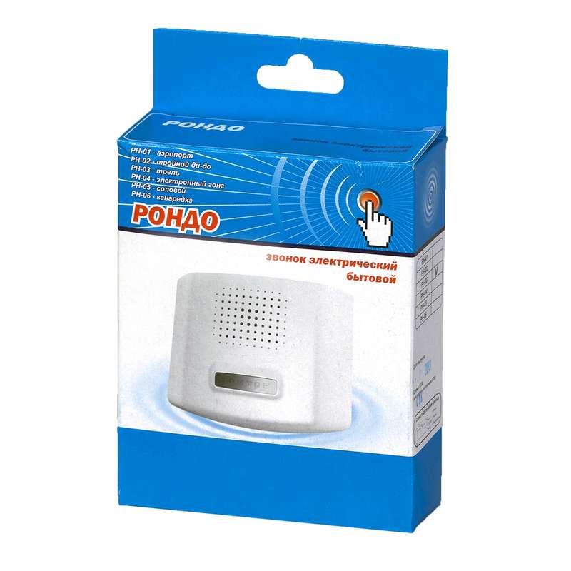 • НАЗНАЧЕНИЕ Звонки бытовые электронные предназначены для подачи сигнала оповещения. • ОБЛАСТЬ ПРИМЕНЕНИЯ Применяются в жилых и офисных помещениях для оповещения присутствующих. Наиболее распространены в жилых многоквартирных домах в индивидуальных квартирах в качестве устройства оповещения о прибытии посетителя. • ПРИНЦИП ДЕЙСТВИЯ Оповещение производится путем нажатия на вынесенную за пределы оповещаемой территории кнопку, соединенную с основным устройством проводной или беспроводной связью. В зависимости от этого звонки бытовые электронные подразделяются на проводные и беспроводные. Подача сигнала основным устройством осуществляется проигрыванием мелодии. Питание устройства и кнопки в зависимости от конкретного устройства осуществляется от заменяемых элементов питания или бытовой электросети 220 В. Конструкция основного устройства основана на полупроводниковой схеме, генерирующей различные звуки и мелодии. Отдельные устройства допускают проигрывание в качестве звукового сигнала музыкального файла в формате mp3 с внешнего носителя информации. • ДОПОЛНИТЕЛЬНЫЕ ПРИНАДЛЕЖНОСТИ ИЛИ АКСЕССУАРЫ В стандартной комплектации, как правило, имеется основное устройство, подающее сигнал оповещения, а также кнопка для дистанционной установки. В зависимости от конкретного устройства возможно наличие в стандартном комплекте поставки элементов питания.Характеристики